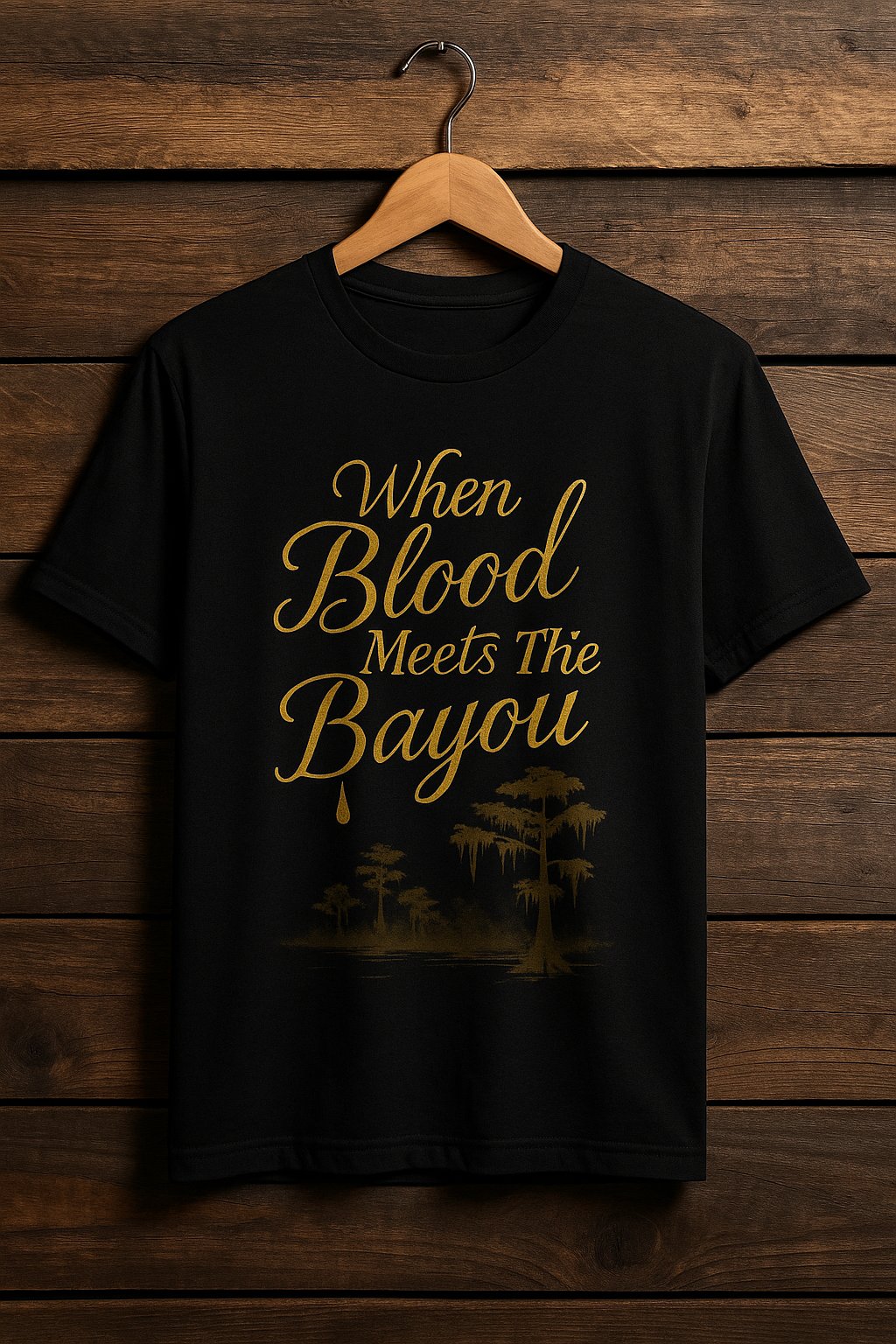 Dive deep into the mood and drama of the Louisiana wetlands with our "When Blood Meets The Bayou" T-Shirt. This shirt is for those who appreciate the Southern Gothic aesthetic, the chilling beauty of the bayou, and stories that have a little darkness at their heart. It's more than just a tee; it's a statement piece for the true mystery lover.